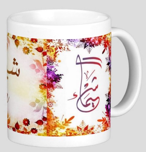 Voir l'ensemble des mugs dédiés au prénoms calligraphiés en arabe (Mugs prénoms arabes musulmans masculins - Mugs prénoms français)