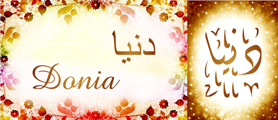 Signification (sens) du prénom Donia (Dounia, Dounya, Dunyâ) دُنْيَا: Univers, monde, vie.