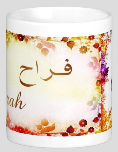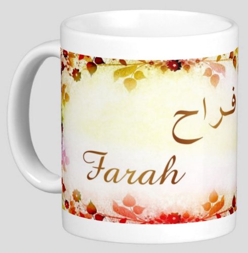 Mug avec le prénom "Farah" calligraphié en arabe (فراح).