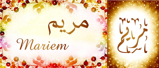 Signification (sens) du prénom Maryam (Mariem, Mariam, Meriem) مَرْيَم: Nom arabe de la Vierge Marie. Elle est la seule femme mentionnée par son nom dans le Saint Coran.
