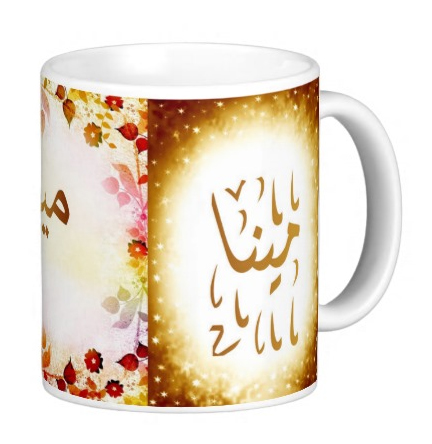 Voir l'ensemble des mugs dédiés au prénoms calligraphiés en arabe (Mugs prénoms arabes musulmans masculins - Mugs prénoms français)