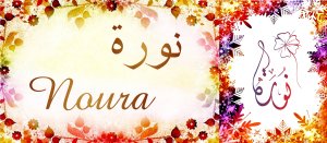 Signification (sens) du prénom Nûrâ (Noura, Nora) نُورَة: Dérivée de Nûr نُور qui signifie soleil, lumière. An-Nûr, titre de la Sourate 24 du Coran.