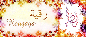 Signification (sens) du prénom Ruqayya (Rouqaya, Roukaya) رُقَيَّة: Diminutif de rûqa (رُوقَة), signifiant belle. Ruqayya, fille du Prophète Muhammad et de Khadîja, elle fut l’épouse du troisième calife orthodoxe ‘Uthmân Ibn ‘Affân.