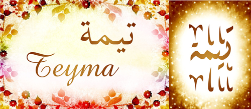 Signification (sens) du prénom Taymâ’ (Teyma) تَيْمَة: Désert, région de la péninsule Arabique.