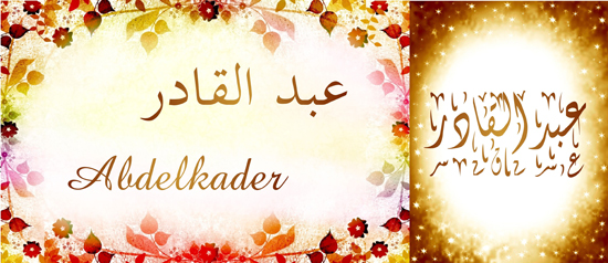 Signification (sens) du prénom ‘Abdulqâdir (Abdelkader, Abdoulkader) عَبْدُ الْقَادِر: 'Abd Al-Qâdir : Serviteur du Puissant, du Déterminant, de Celui qui détient le Pouvoir. ‘Abdulqâdir Ibn Muhyiddîn, émir arabe qui dirigea de 1832 à 1847 la résistance de la conquête de l’Algérie par la France (1808-1883).