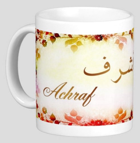 Mug prénom arabe masculin "Achraf" - أشرف - REF. 15571 (5.90 €)