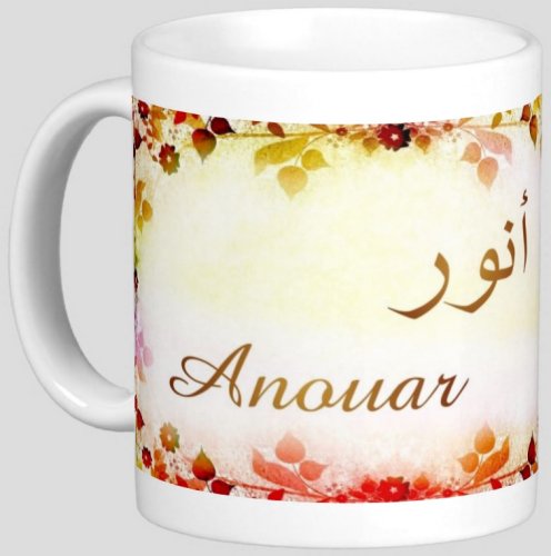 Mug avec le prénom "Anouar" calligraphié en arabe (أنور).