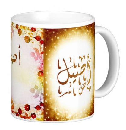 Voir l'ensemble des mugs dédiés au prénoms calligraphiés en arabe (Mugs prénoms arabes et musulmans féminins - Mugs prénoms français)