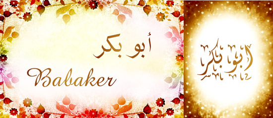 Signification (sens) du prénom Babaker (Abou Bakr) أَبُو بَكر: Premier-né. Signifie aussi un jeune chameau. Abû Bakr As-Siddîq, compagnon du Prophète.