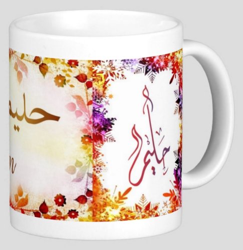 Voir l'ensemble des mugs dédiés au prénoms calligraphiés en arabe (Mugs prénoms arabes et musulmans féminins - Mugs prénoms français)