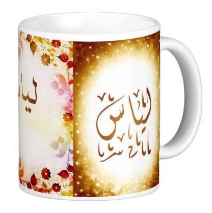 Voir l'ensemble des mugs dédiés au prénoms calligraphiés en arabe (Mugs prénoms arabes et musulmans féminins - Mugs prénoms français)