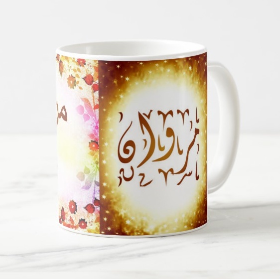 Voir l'ensemble des mugs dédiés au prénoms calligraphiés en arabe (Mugs prénoms arabes et musulmans féminins - Mugs prénoms français)