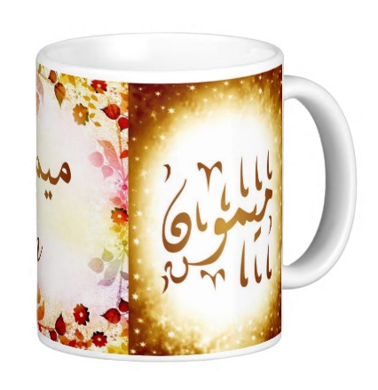 Voir l'ensemble des mugs dédiés au prénoms calligraphiés en arabe (Mugs prénoms arabes et musulmans féminins - Mugs prénoms français)