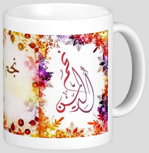 Voir l'ensemble des mugs dédiés au prénoms calligraphiés en arabe (Mugs prénoms arabes et musulmans féminins - Mugs prénoms français)