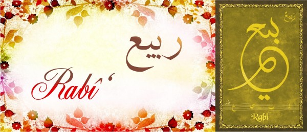 Signification (sens) du prénom Rabî‘ (Rabi) رَبِيع: La première des quatre saisons de l’année, le printemps. Ar-Rabî‘ Ibn Khuýaym, éminent érudit de la génération des successeurs.