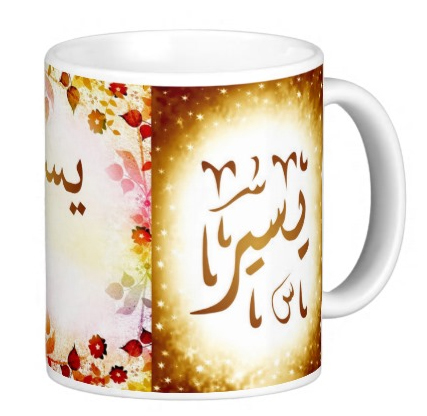 Voir l'ensemble des mugs dédiés au prénoms calligraphiés en arabe (Mugs prénoms arabes et musulmans féminins - Mugs prénoms français)