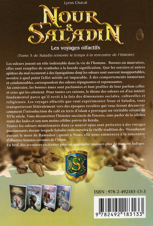 Au contraire, les bonnes âmes sont parfumées et font profiter de leur parfum celles et ceux qui les côtoient. Pour toutes ces raisons, le thème des odeurs est d’un intérêt fondamental parce qu’il revêt à la fois des dimensions sociales, culturelles et religieuses. Les voyages olfactifs que vont expérimenter Nour et Saladin, vous transporteront littéralement vers des époques reculées qui vous feront découvrir comment l’introduction du café en terre d’islam a provoqué un véritable séisme au XVIe siècle. Vous découvrirez l’histoire succincte de l’encens, sans parler de la célèbre route des Indes et son non moins célèbre poivre du Kerala.