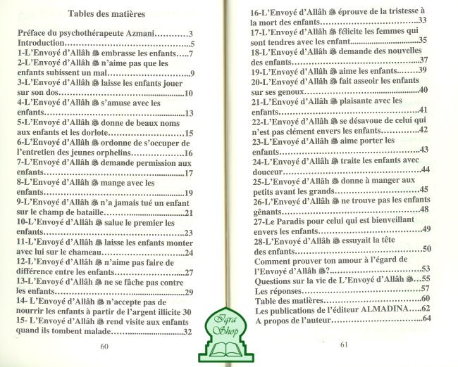 "Sache mon enfant que le Prophète (SBDL) t'aime ! Il aime tous les enfants. Dans ce livre, tu vas voir combien l'Envoyé de Dieu (SBDL) t'aime. Toi et les enfants du monde entier. Et pour approfondir cet amour que tu dois et que l'on doit tous témoigner pour l'Envoyé de Dieu; j'ai exposé les hadiths qui montrent jusqu'à quel point l'Envoyé de Dieu (SBDL) aime les enfants, afin de les inciter à l'aimer davantage. C'est cet amour-là qui est capable de nous encourager à le suivre. Lis le livre et après l'avoir lu, tu me diras si toi aussi tu aimes l'Envoyé de Dieu (SBDL) comme il t'aime. Si tu me demandes : "Comment montrer que j'aime l'Envoyé de Dieu (SBDL) ?". Je te répondrai : "Tu trouveras la réponse à la fin de ce livre".