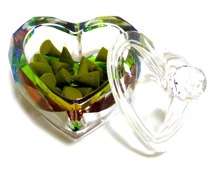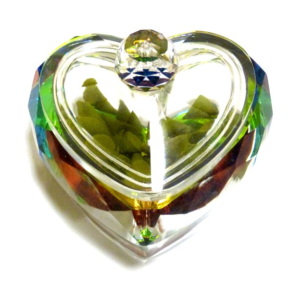Objet decoratif en cristal sous forme de coeur (recipient multi-usages avec son couvercle)