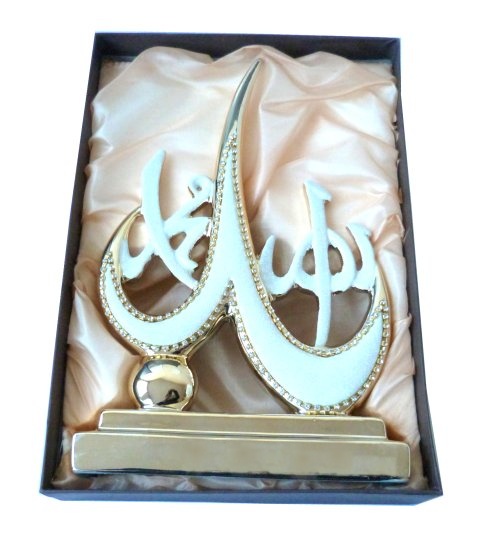 Très bel garniture en porcelaine dorée avec les Noms "Allah & Mohammed" décoré de diamants...