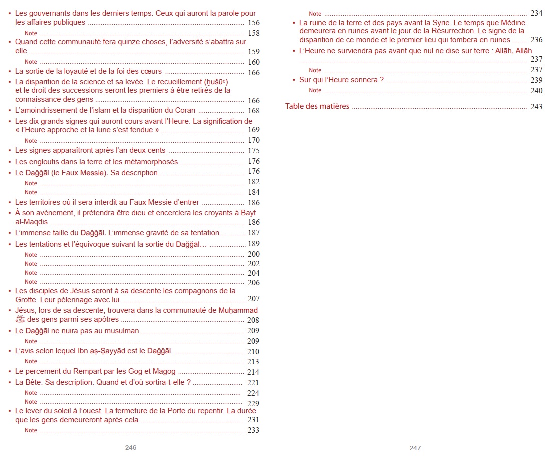 Le présent livre met la lumière sur les Signes de la fin du monde tels que décrits par Dieu dans le Coran et par Son prophète (SAW) dans la Sunna authentique, et vous apportera les réponses à de nombreuses questions relatives aux signes déjà parus et ceux attendus tels que le Faux Messie et le retour de Jésus fils de Marie, Le Mahdî... les petits signes et les grands signes...