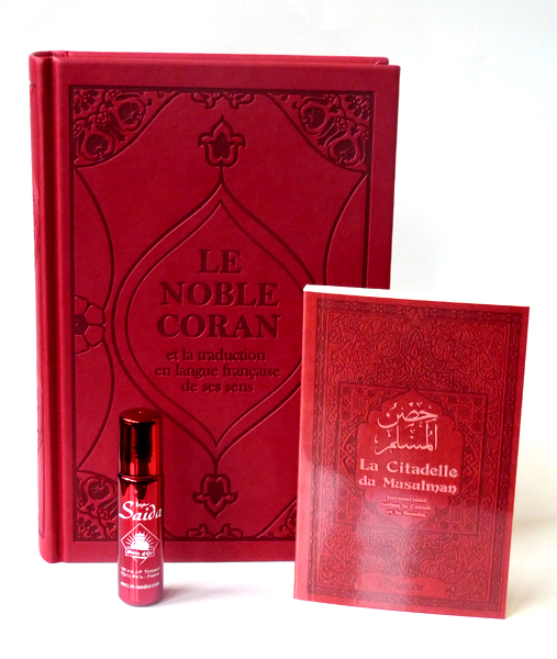 Pack Cadeau Bordeaux pour femmes : Le Noble Coran Bilingue français/arabe, La Citadelle du Musulman et parfum de luxe - REF. 24610 (25.00 €)
