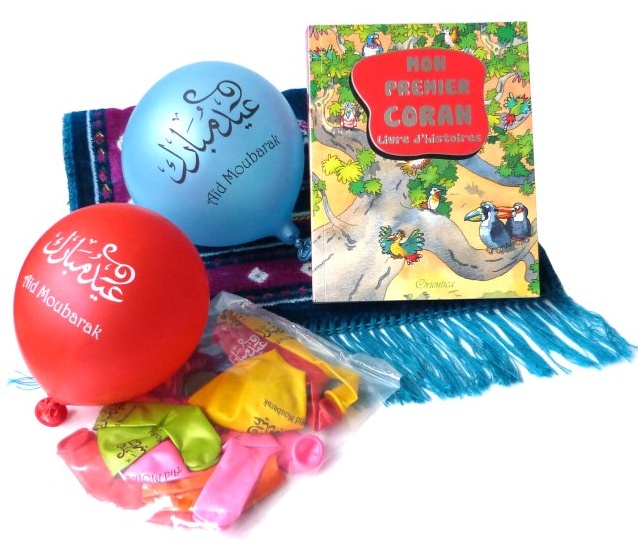 Pack Cadeau Enfant : Livre Les Histoires des Prophètes Racontées aux Enfants + Confiseries Bonbons Halal + Tapis de prière enfant + 10 ballons "Aïd Moubarak" - REF. 23172 (24.00 €) |