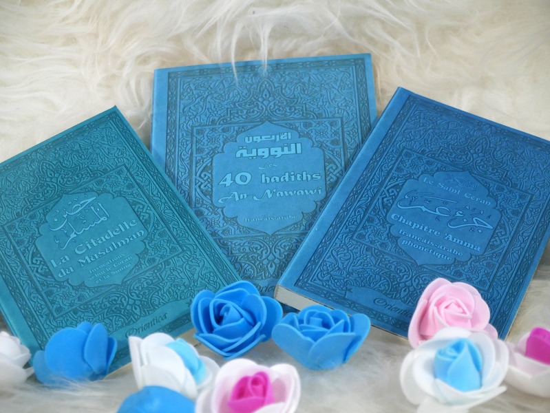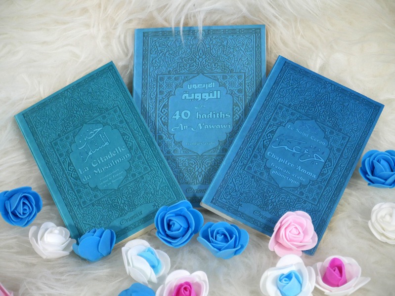 Joli pack cadeau mixte (homme et femme) constitué de trois livres aux couvertures bleues avec arabesques assorties :