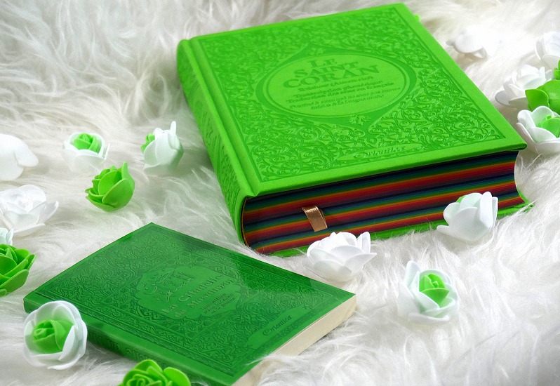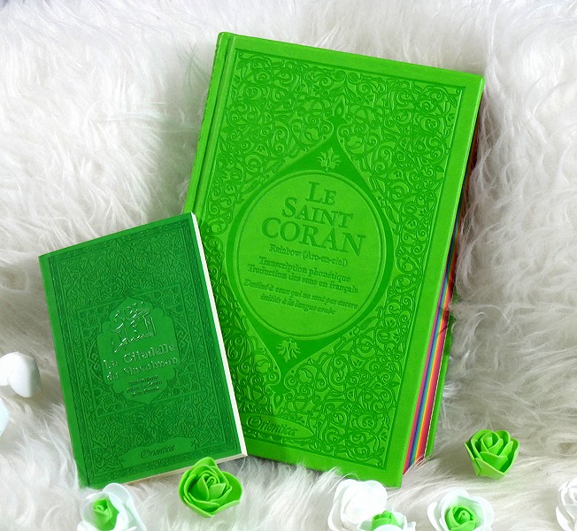 Pack Cadeau Vert clair : Le Saint Coran Rainbow et La citadelle du musulman (français/arabe/phonétique) Deco & Cadeau