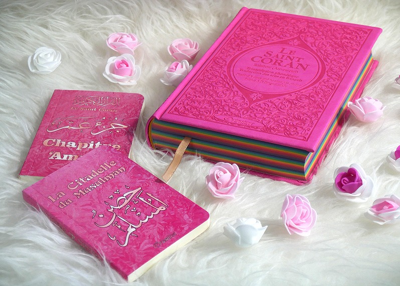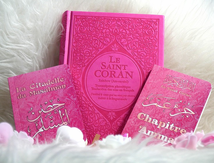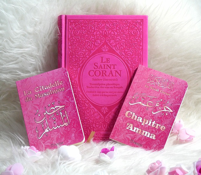 Pack cadeau rose assorti pour femmes musulmanes à offrir dans divers occasions. Il est constitué des trois livres suivants (tous en français, arabe et phonétique) :