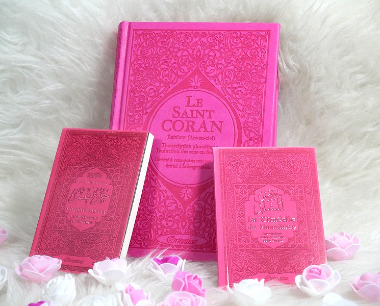 Coffret cadeau islamique rose pour femme musulmane : Le Saint Coran, Chapitre Amma et La citadelle du musulman - REF. 28470 (29.90 €)