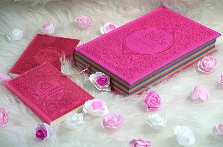 Coffret/Pack Cadeau pas cher de couleur rose pour femme musulmane : Les 40 hadiths an-Nawawî, Chapitre Amma et La Citadelle du Musulman - REF. 28487 (7.50 €)