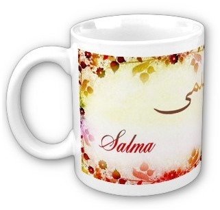 Pack constitué du Parfum (3 ml) "Salma" et du Mug avec le prénom "Salma" écrit en français, en arabe (سلمى) et calligraphié de façon artistique en arabe sur la partie droite.