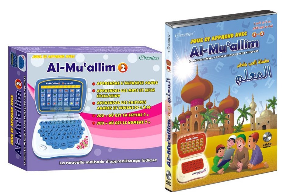 Retrouvez les ordinateurs et tablettes Al-Muallim permettant à l'enfant de découvrir de façon ludique l'alphabet arabe, les invocations et le Coran.
