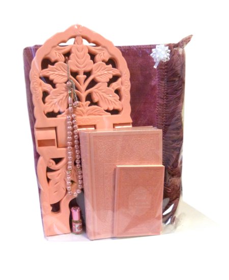 Un cadeau original qui ne passera pas inaperçu. Le Coran, le porte Coran, la Citadelle et le chapelet sont exactement de la même couleur (rose pale).