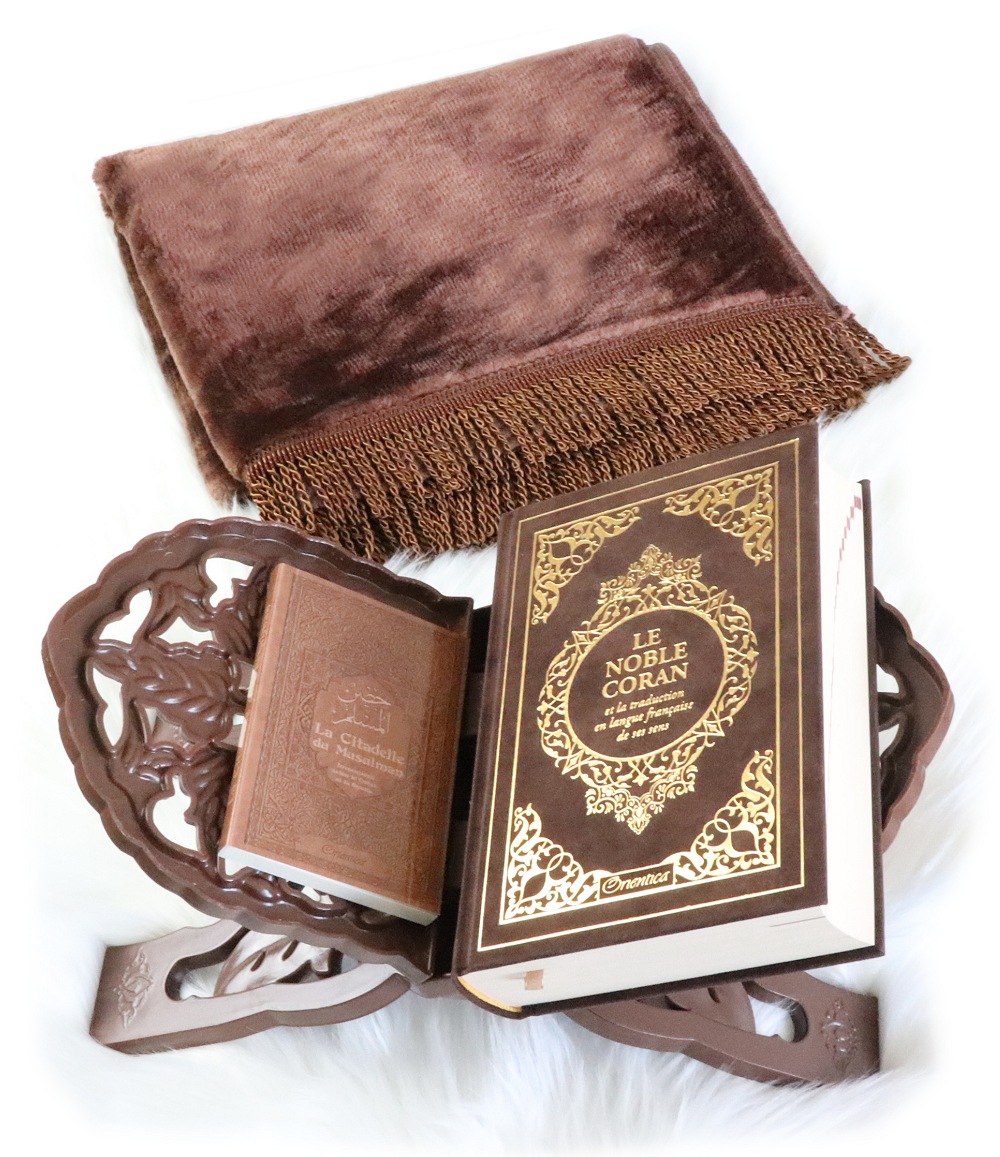 Pack cadeau de couleur marron avec éléments assortis, constitué des produits suivants :