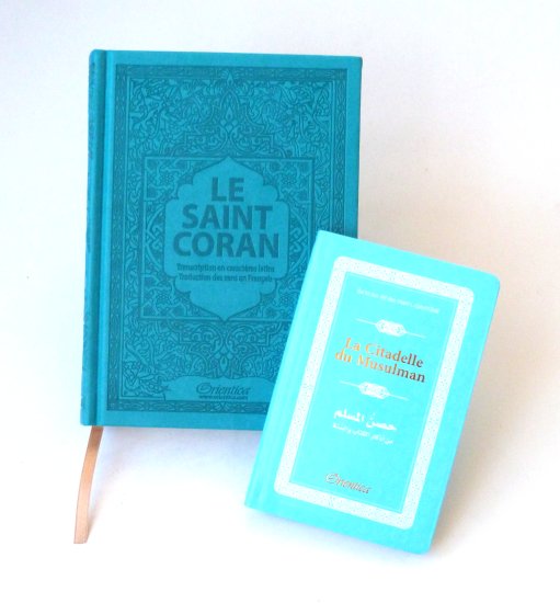 Pack Cadeau Musulman Vert-Bleu avec 3 livres en français/arabe/phonétique : Le Saint Coran, Chapitre Amma (Petites sourates) et La Citadelle du Musulman (Invocations) - REF. 28473 (29.90 €)