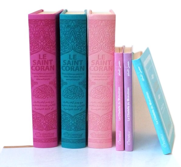 Pack Cadeau rose pour femme musulmane : Le Saint Coran Rainbow, Chapitre Amma et La citadelle du musulman (en français-arabe-phonétique) - REF. 28517 (34.00 €)