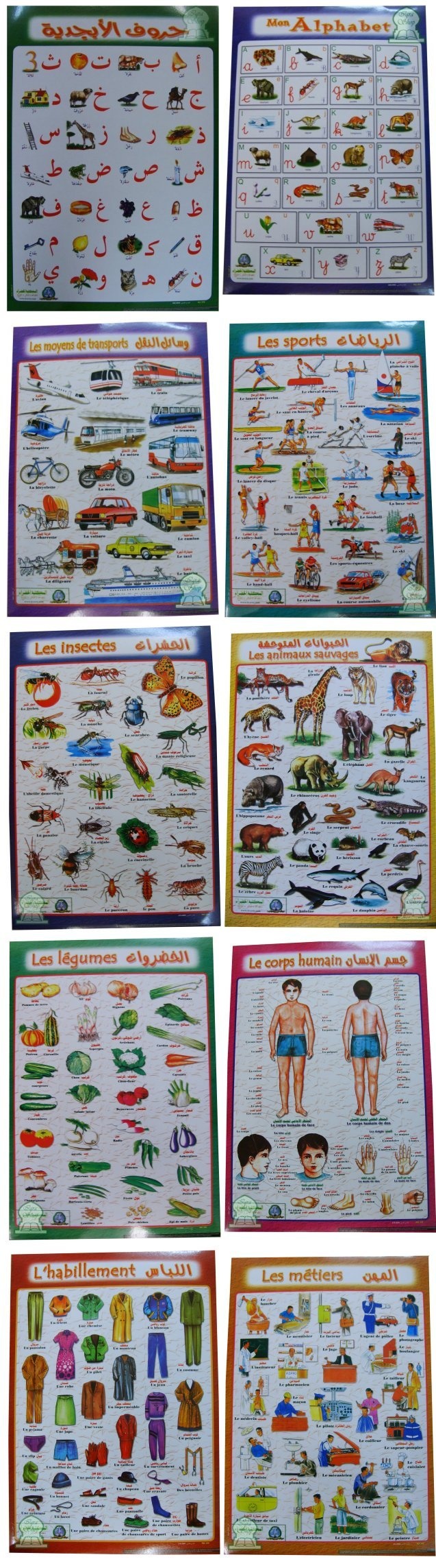 Indispensables pour les écoles de langue arabe, ces posters, très bien illustrés, vont embellir les classes de cours.