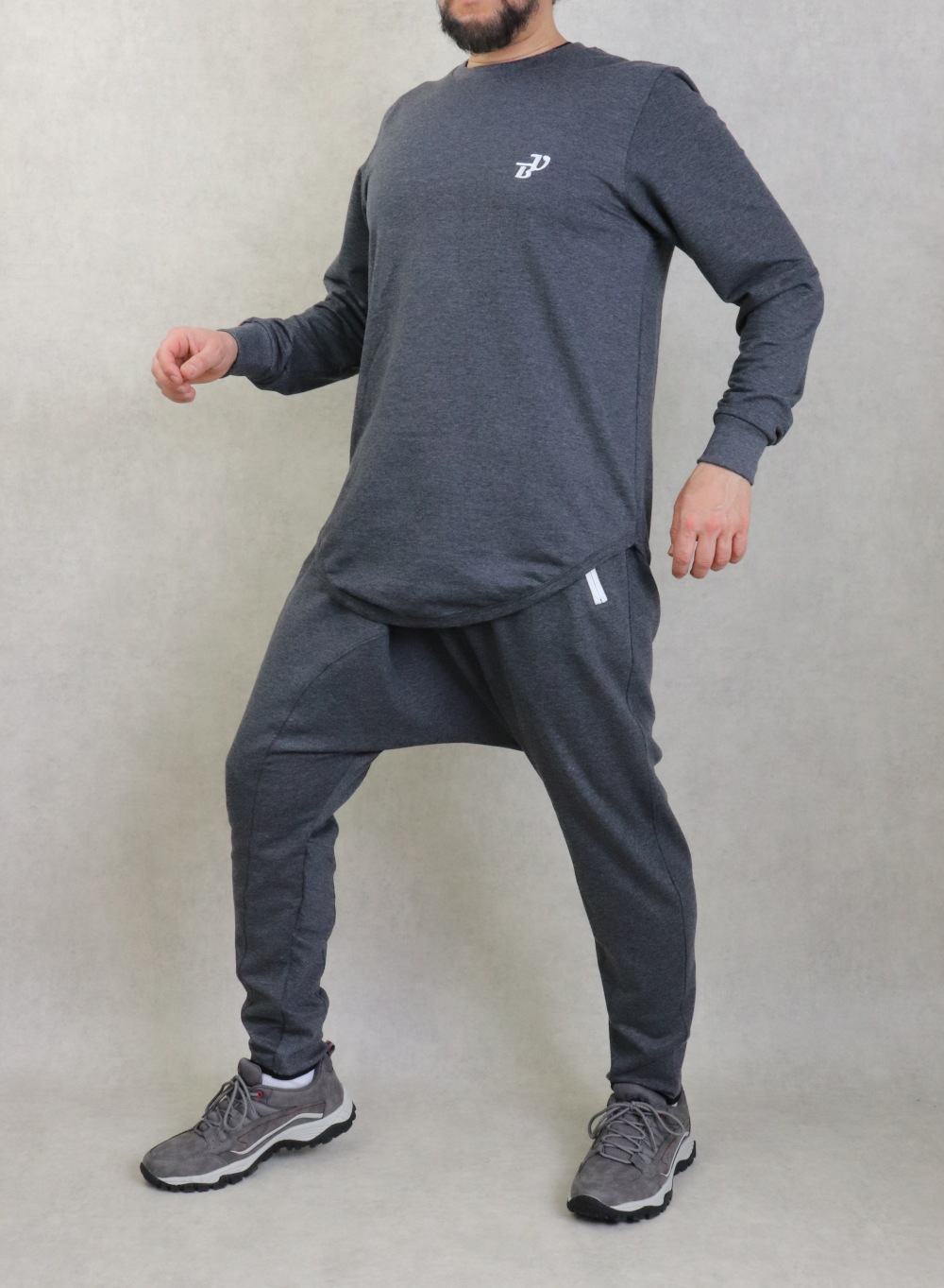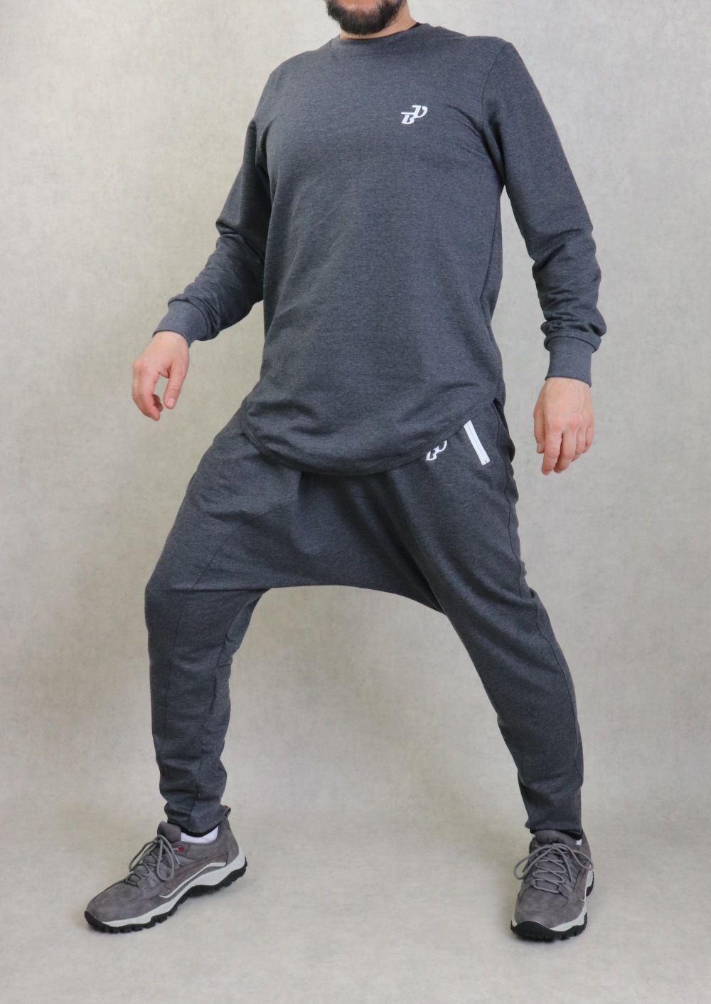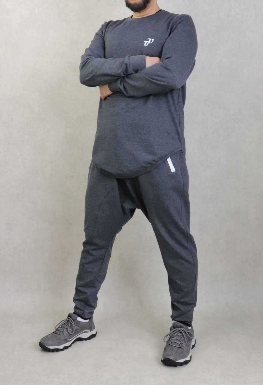 Ensemble Sweat longline et son Pantalon Seroual Jogging léger homme - Marque Best Ummah - Couleur Gris foncé chiné - REF. 38719 (49.90 €)