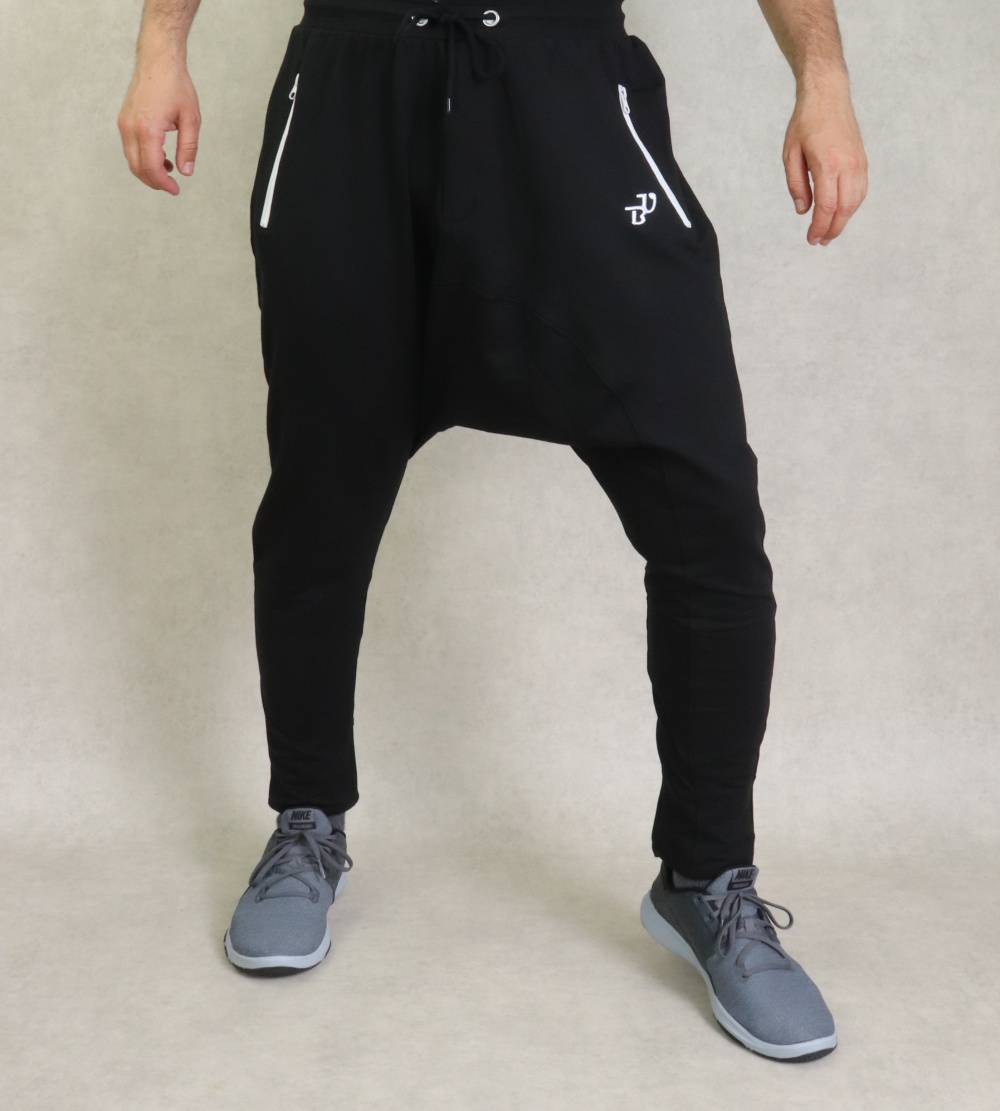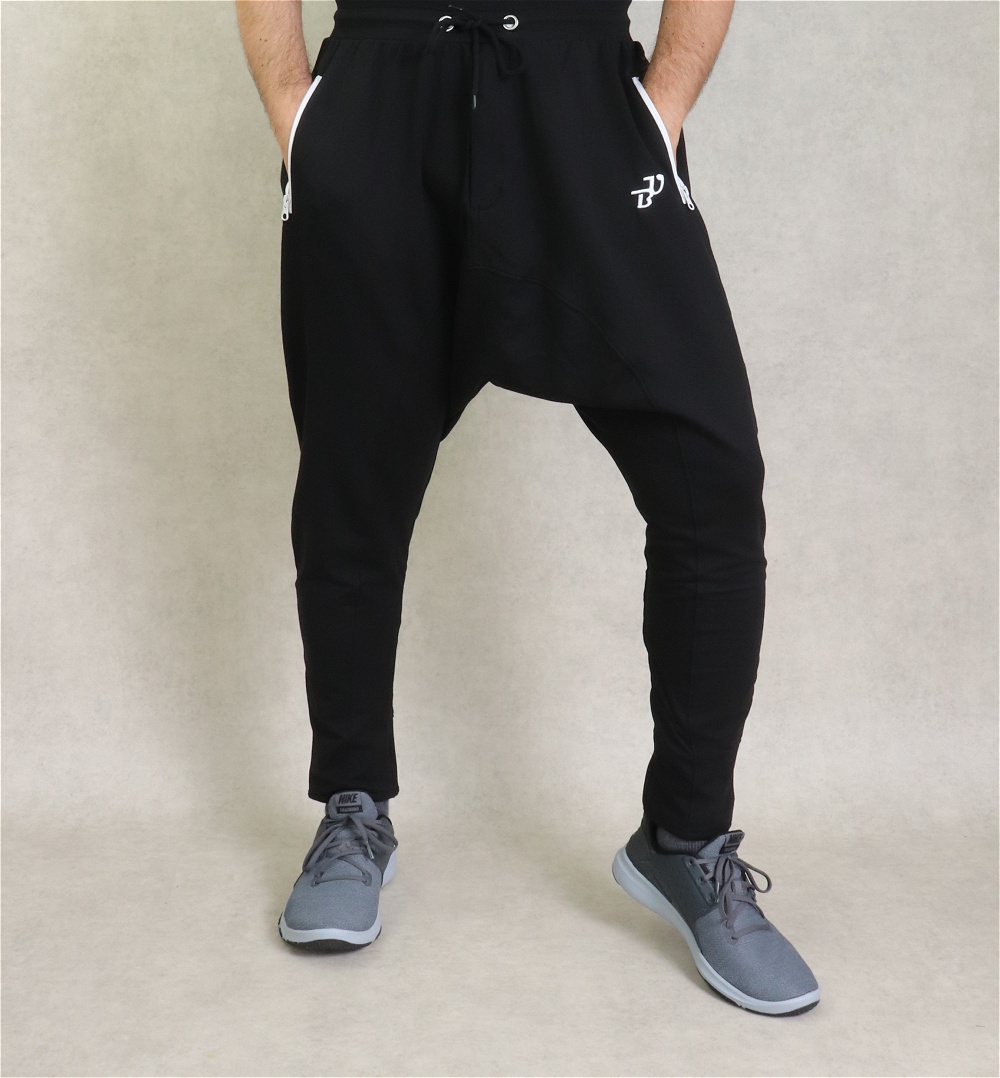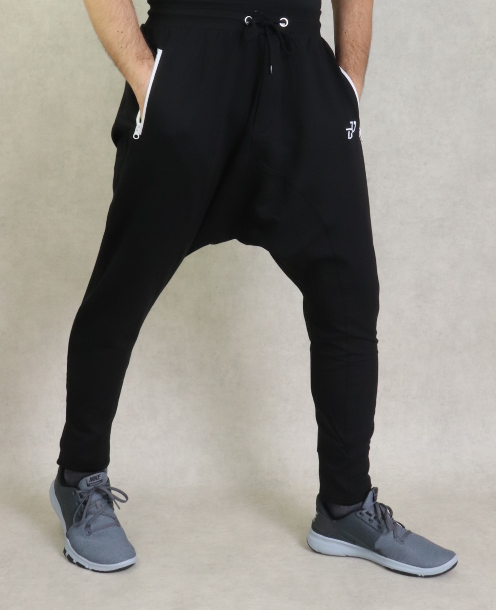 Pantalon Saroual Jogging molletonné poches zip blanches pour homme - Marque Best Ummah - Couleur noir - REF. 36843 (29.90 €)