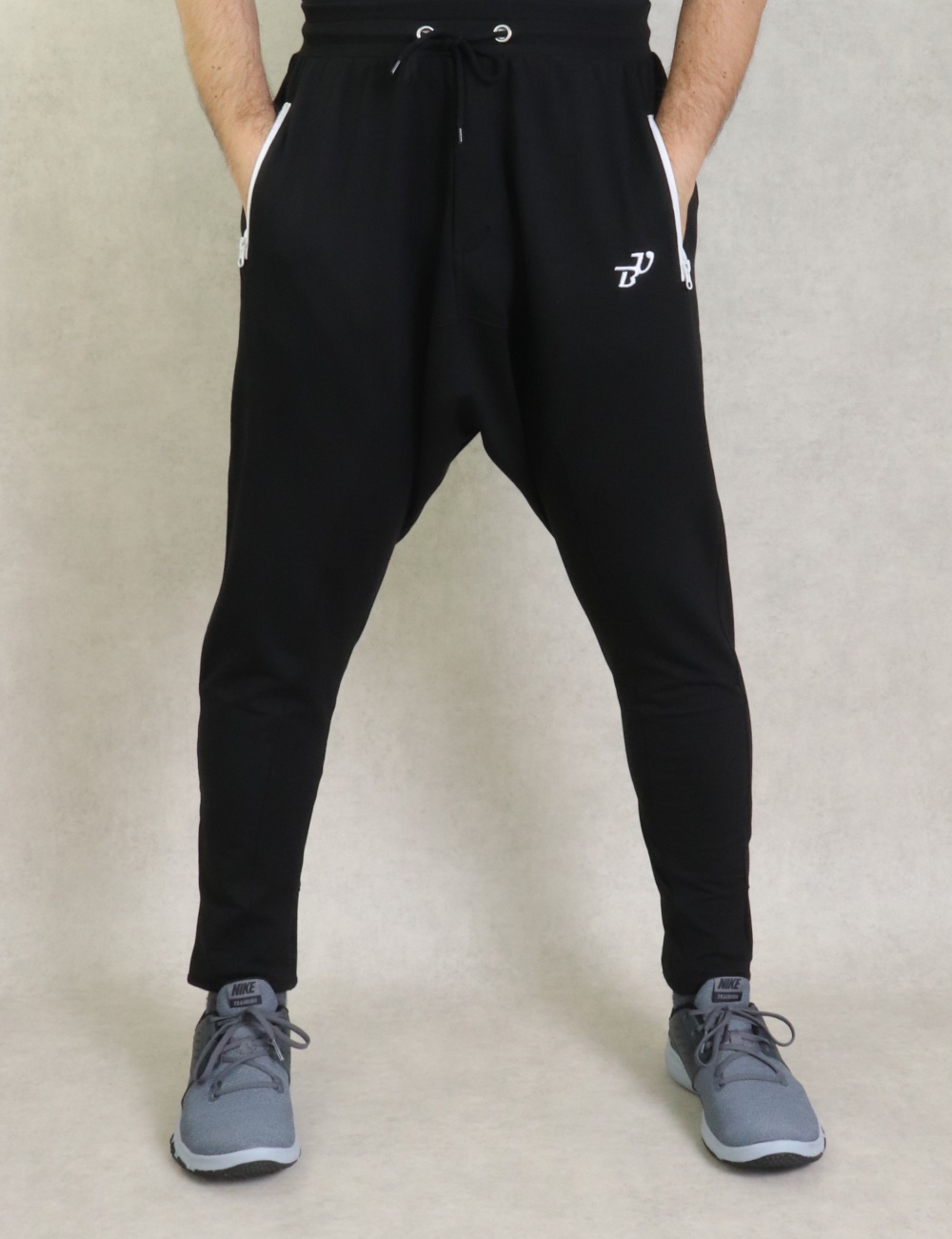 Pantalon Seroual Jogging leger homme poches zip blanches - Marque Best Ummah - Couleur noir