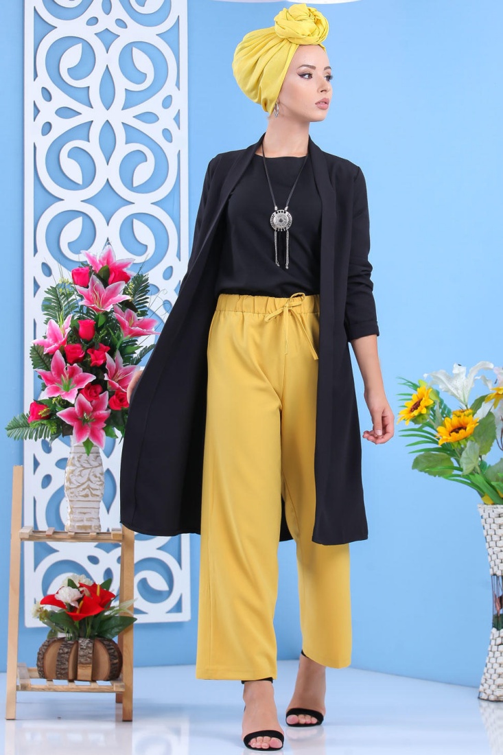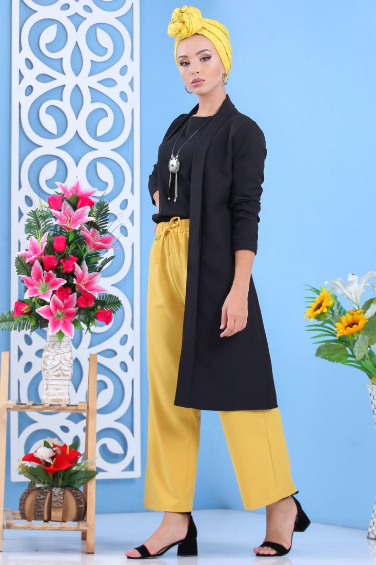Tunique bicolore pour femme (Vetement hijab) - Couleur noir et moutarde
