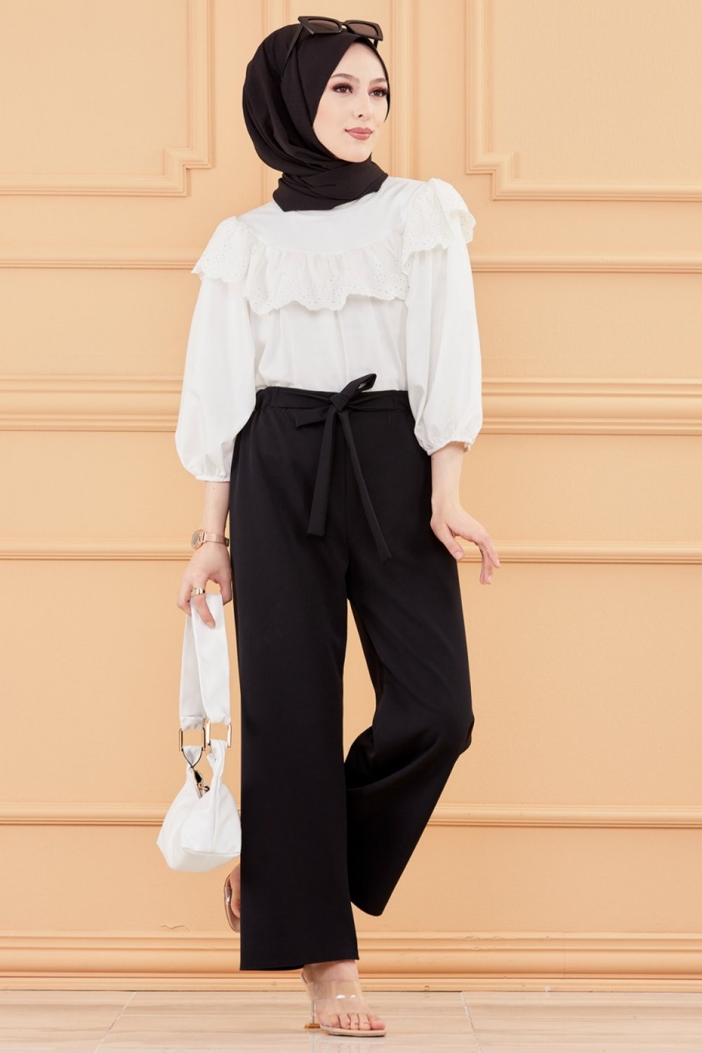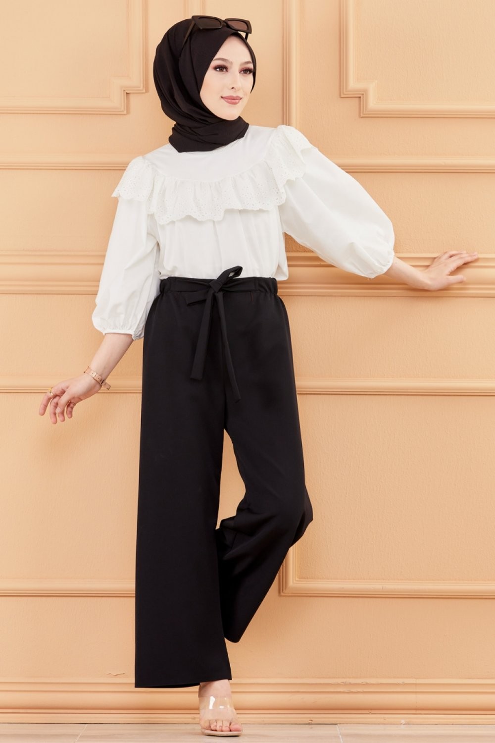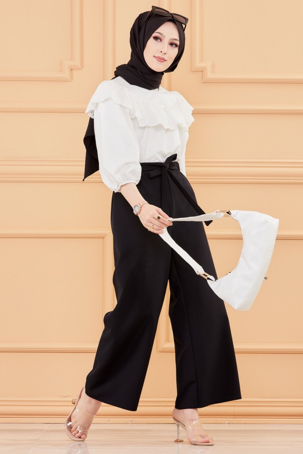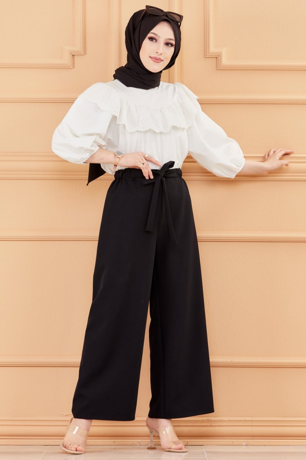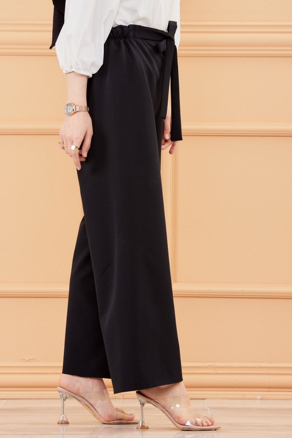 Pantalon classique ample avec ceinture assortie pour femme - Couleur noir Vetement & Accessoire