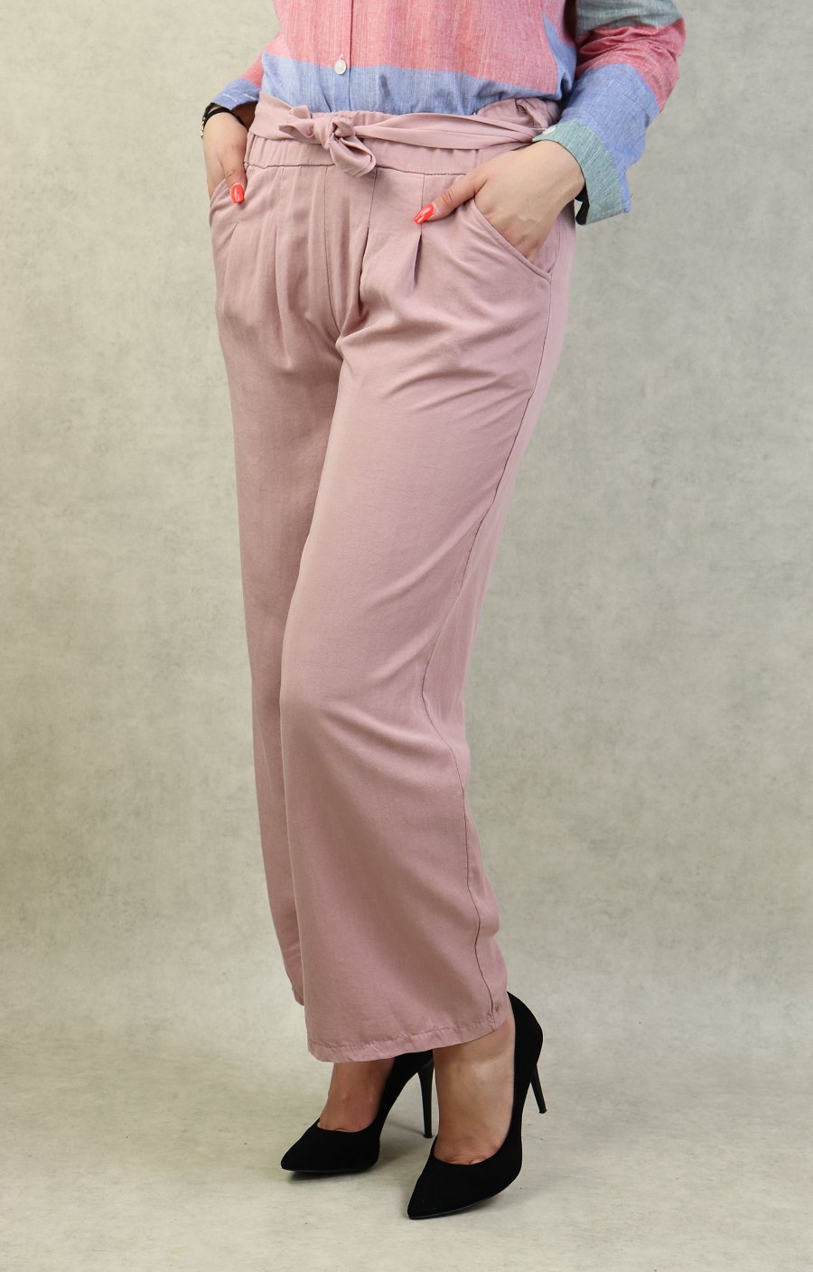 Pantalon decontracte avec ceinture pour femme - Couleur rose