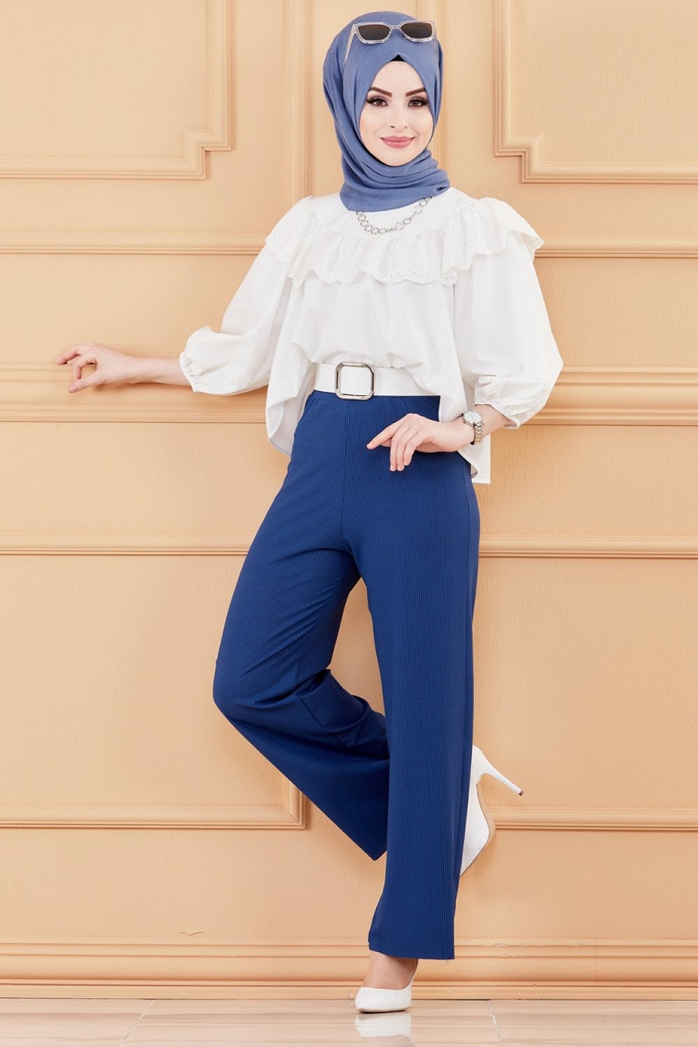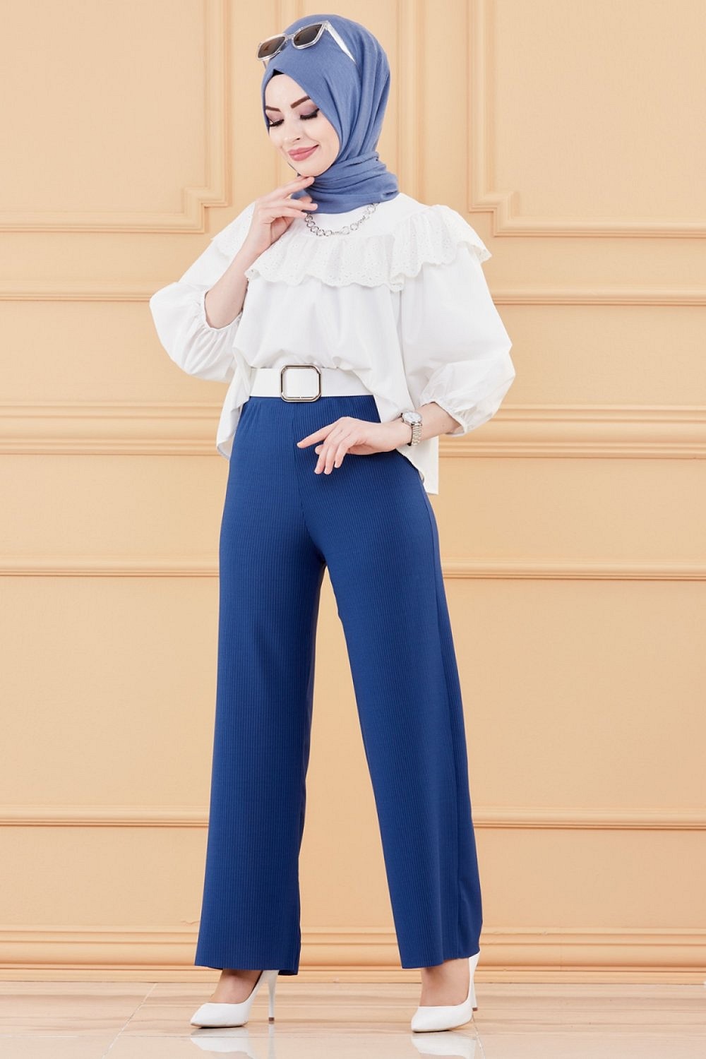 Pantalon été style habillé (Vêtement chic pour femme) - Couleur bleu Vetement & Accessoire