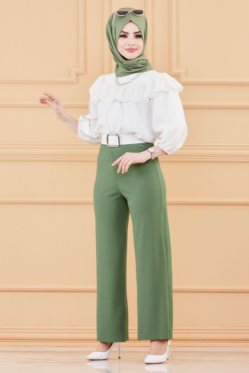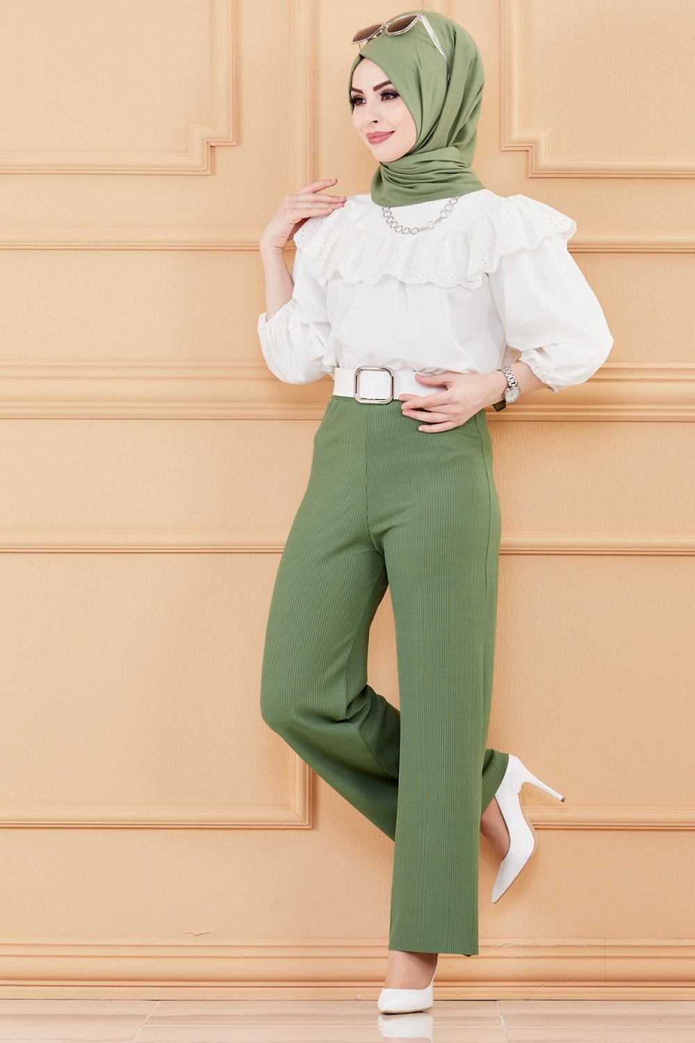 Pantalon été style habillé (Vêtement chic pour femme) - Couleur kaki clair Vetement & Accessoire