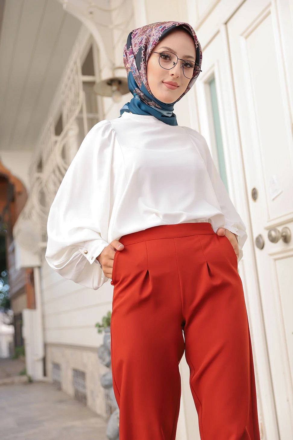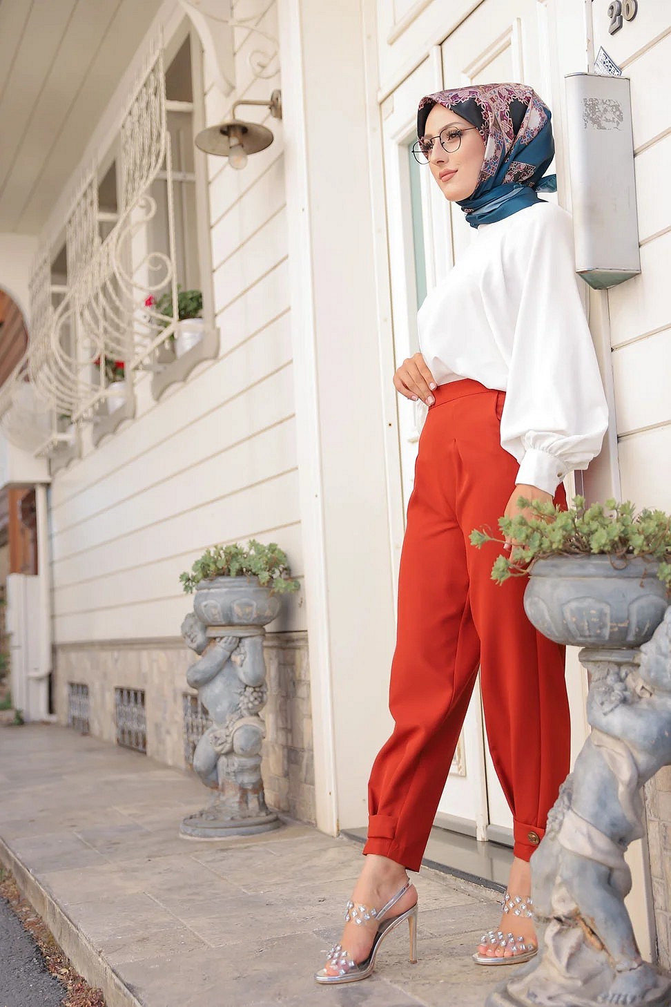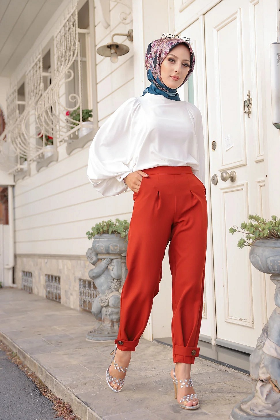 Pantalon femme classique et casual (Boutique en ligne mode hijab) - Couleur brique