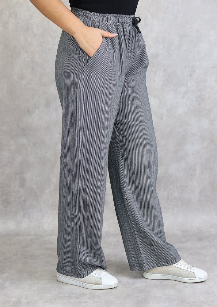 Pantalon femme à rayures noires, beiges et violettes - Marque Amelis Paris - REF. 30293 (22.00 €) - En Promotion à 14.90 €