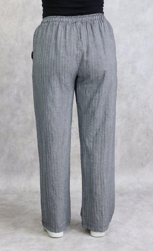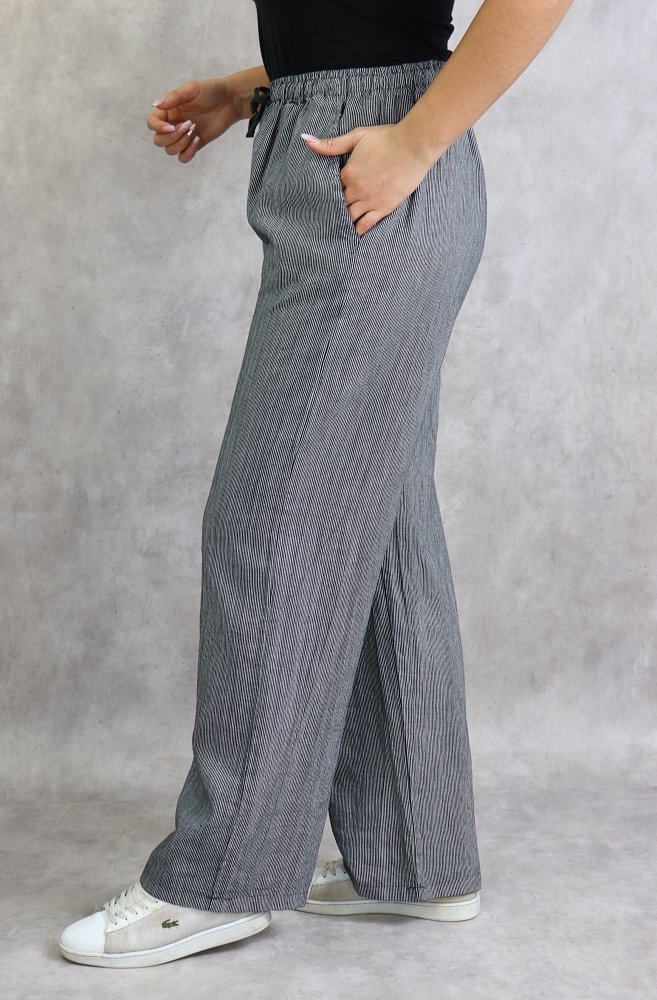 Pantalon femme décontracté en lin blanc à fines rayures noires Vetement & Accessoire